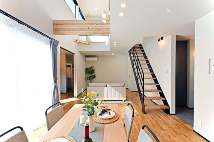 ■吹き抜けから自然光が差し込む開放感あふれるリビング