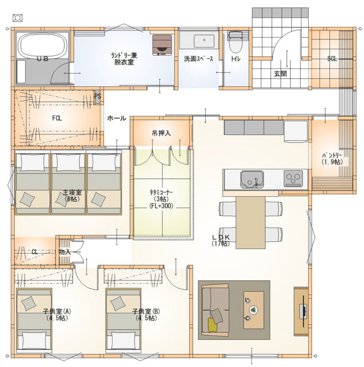 やさしく明るい雰囲気の内観が魅力で、家族の暮らしに寄り添った間取りを、ぜひ現地でご体感ください。