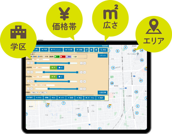 ご希望に合わせて、リアルタイムで土地を探すことが可能です。