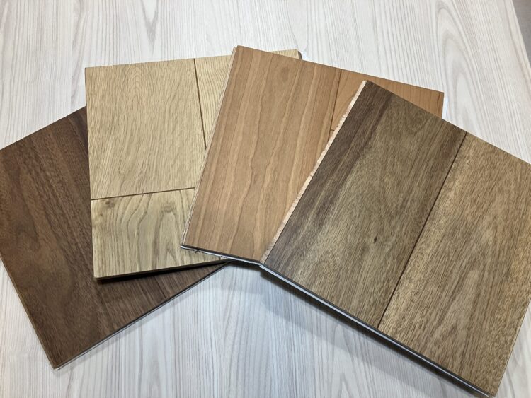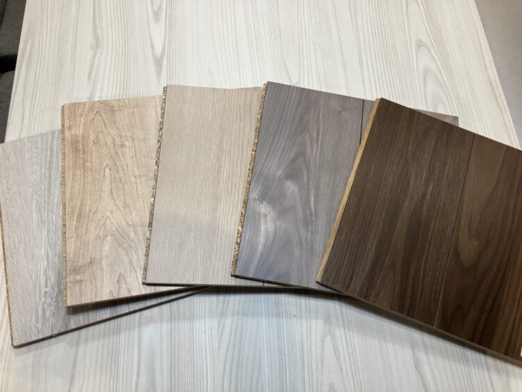 合板の上に木目シートや化粧板を貼った床材です。